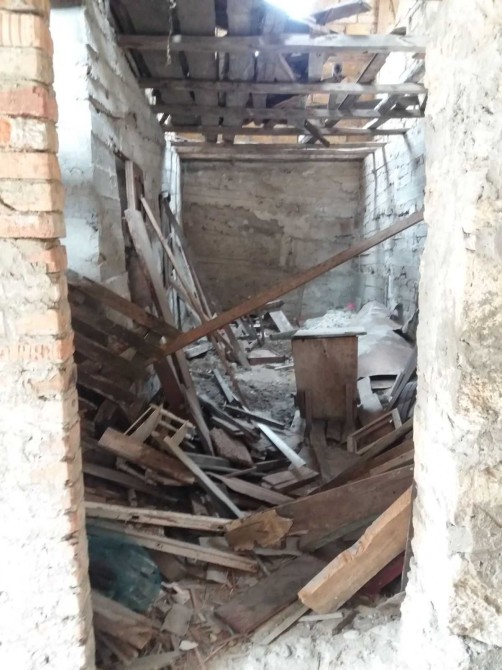2 Жильё - 2 комнаты смежные; прихожая - 12 м. кв.; 1/1 эт., 50/38/12 - прихожая; 5 окон; дерево новое в лаке (окна и двери); входная дверь железная; пол - стяжка; электричество, свет, крыша - шифер;