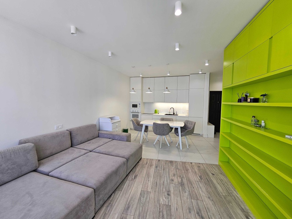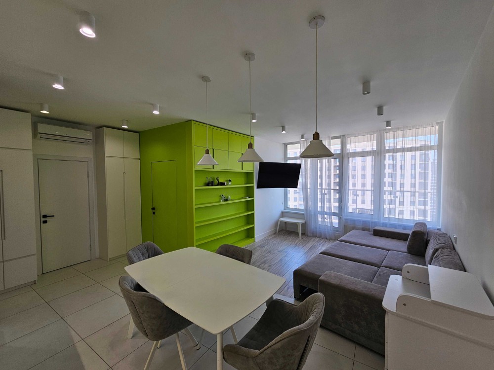 Перша здача. Пропонується в оренду сучасна квартира в новобудові біля м. Житомирська (Берестейський пр-т, 131а). В будинку є генератор (завжди є опалення, вода та працює ліфт). Квартира укомплектована всіма необхідними меблями та технікою. У кімнаті - двоспальне ліжко, розкладний диван, письмовий стіл, кондиціонер, телевізор, велика шафа для одягу. Санвузол суміщений, душова кабінка. Тихий двір, велика парковка. До метро Житомирська - 10 хвилин пішки. Вартість 16000 грн. Умови оренди: оплата за два місяці та послуги рієлтора (50%). комісія: 50%