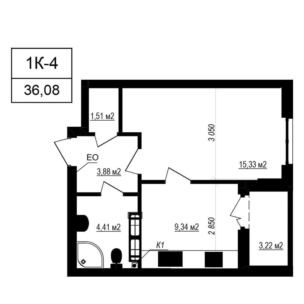 • Общая площадь 36.4 м2