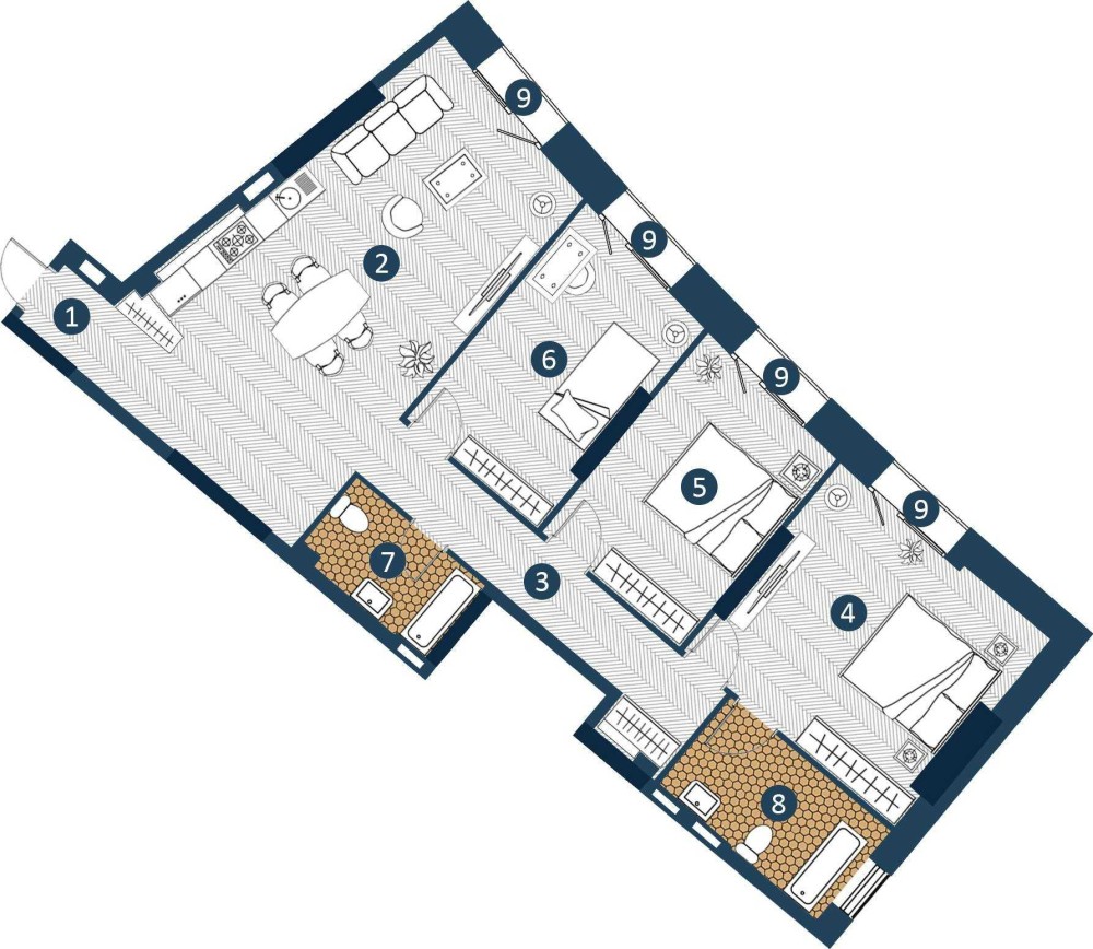 • Трехкомнатная
