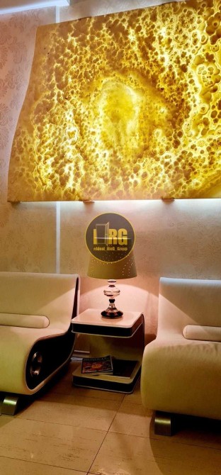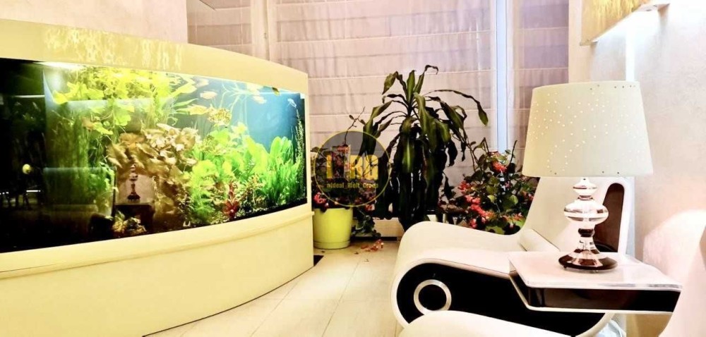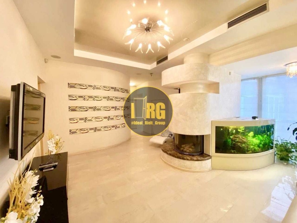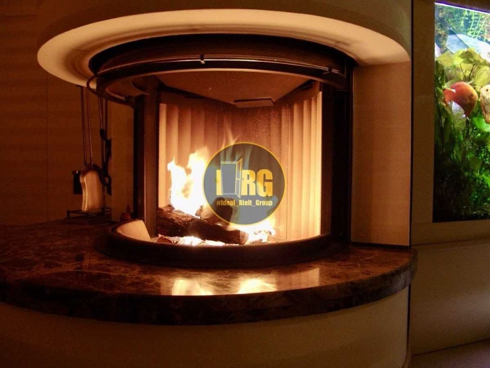 Окрема зона відпочинку з автоматизованим акваріумом, каміном та зимовим садом на балконі. Вікна виходять у тихий двір.