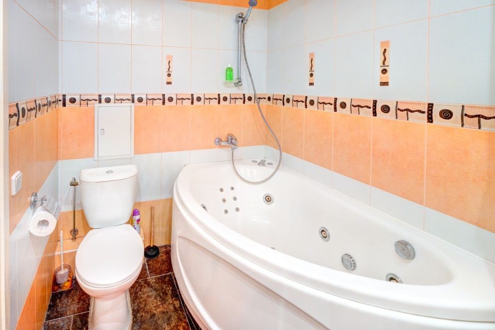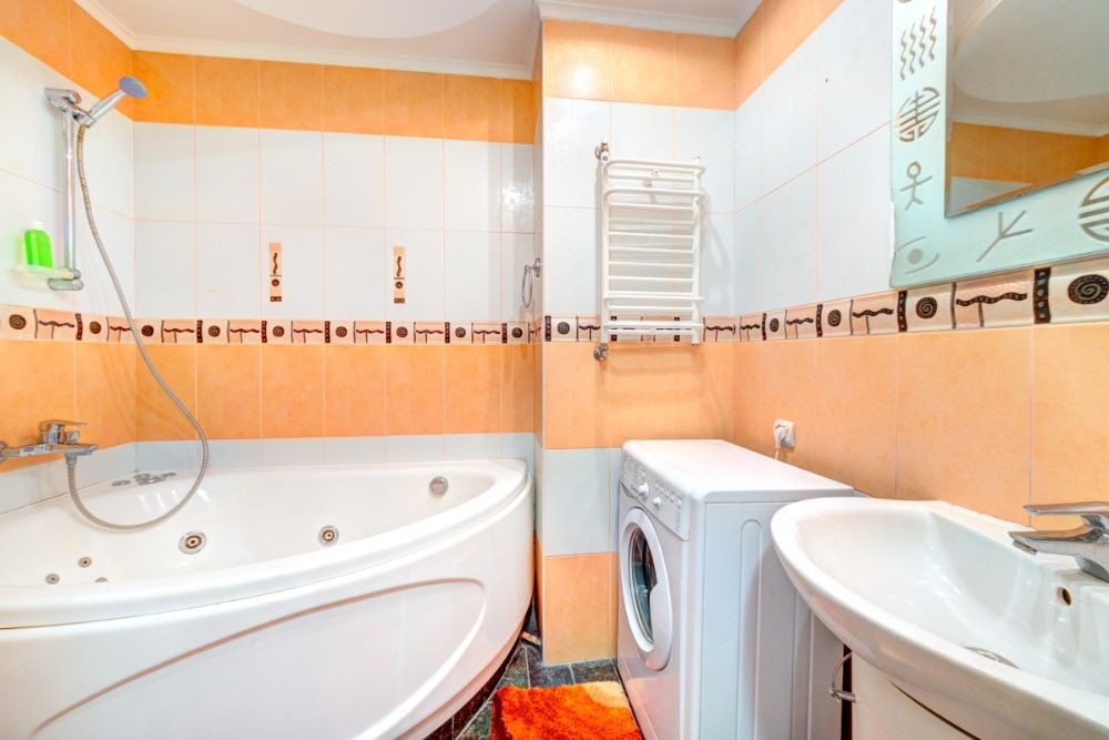 Ванная комната особенна одноместным джакузи, что позволит расслабиться и приятно завершить день. Помимо этого, также присутствует стиральная машина.