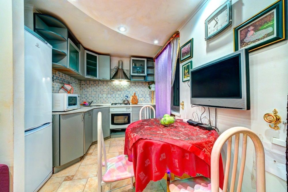 Трехкомнатные апартаменты в минимальном отдалении от центра города по Кловскому спуску 14Б подойдут для размещения гостей в количестве до 6 человек. Особенности квартиры: