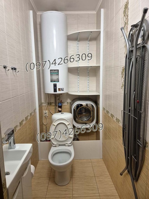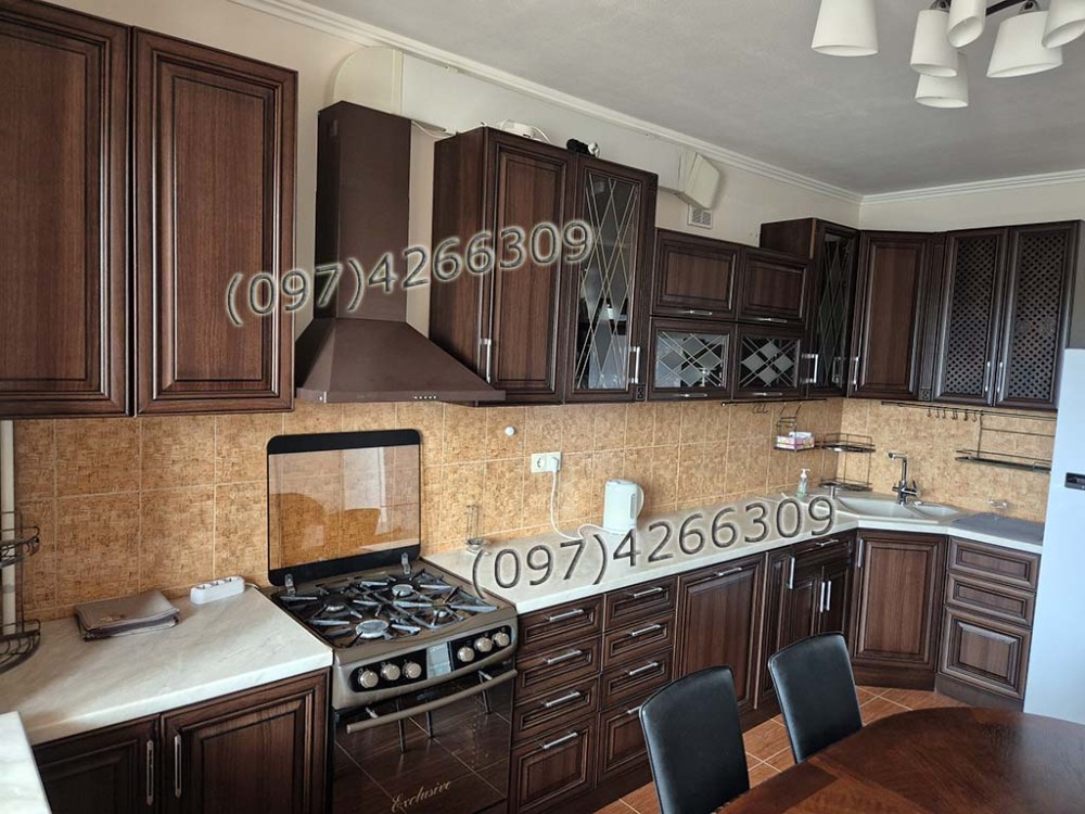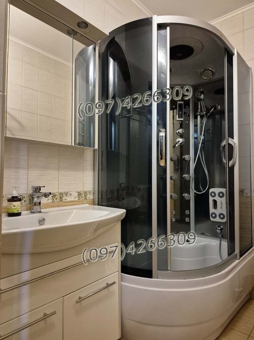 бойлер 150л, 4 кондиціонера, 2 холодильника, прально-сушильна машина, газова плита, витяжка, телевізор, фільтр води з осмосом, захист від протічок, стабілізатор напруги, домофон.