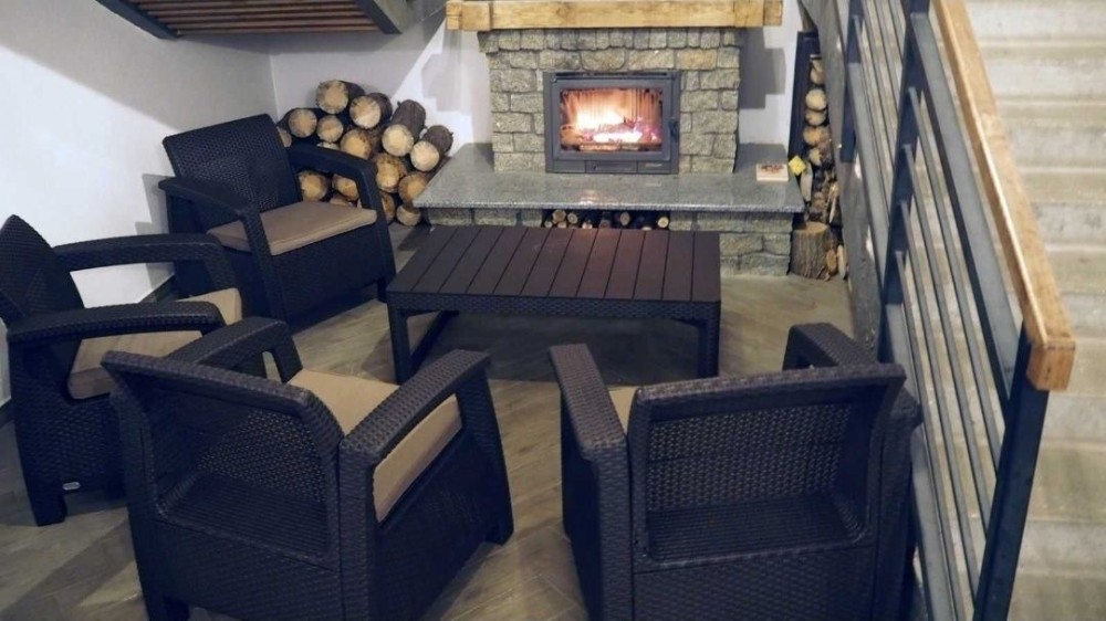 - камін на дровах та загальна зона для відпочинку в парадному,