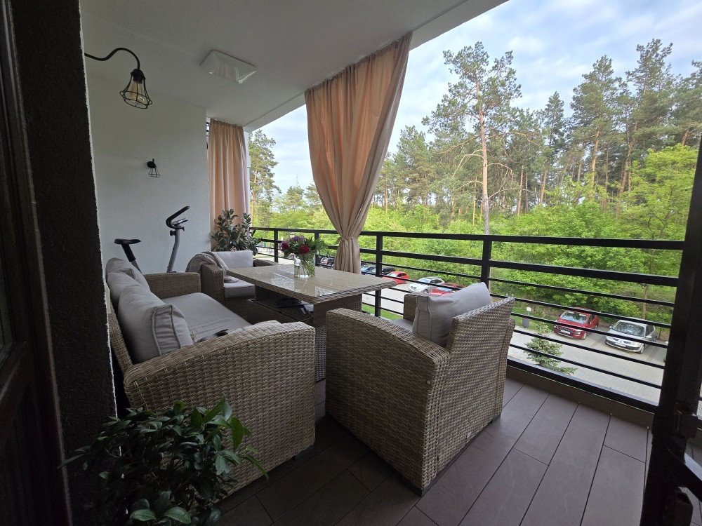 Трикімнатна квартира з великою власною терасою з видом на ліс, якісним новим ремонтом, сучасними вбудованими меблями та технікою провідних виробників.