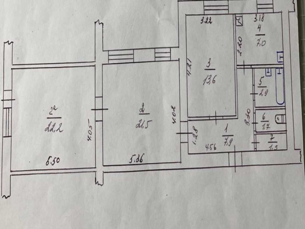 • Площадь кухни 7 м2