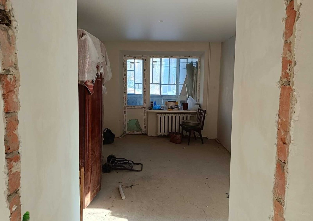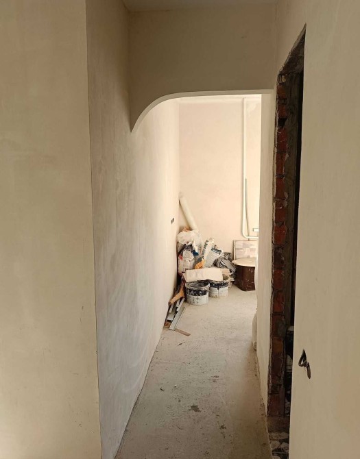 • Кухня частково підготовлена: чистова штукатурка стін, плитка на робочу зону, зроблена стеля