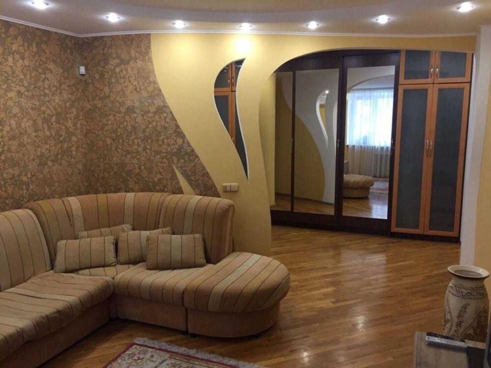 Поверх 11тий, загальна площа 85м2, три окремі кімнати, дві з дверимо і одна з аркою як зал, два двоспальних дивана, двоспальне ліжко, дві шафи, вбудована кухня, вся необхідна техніка та меблі.