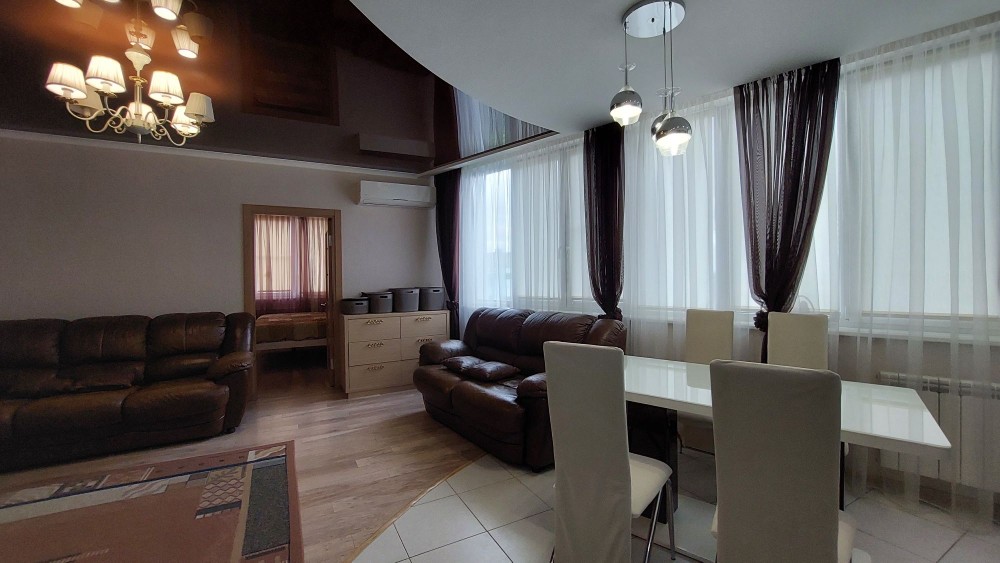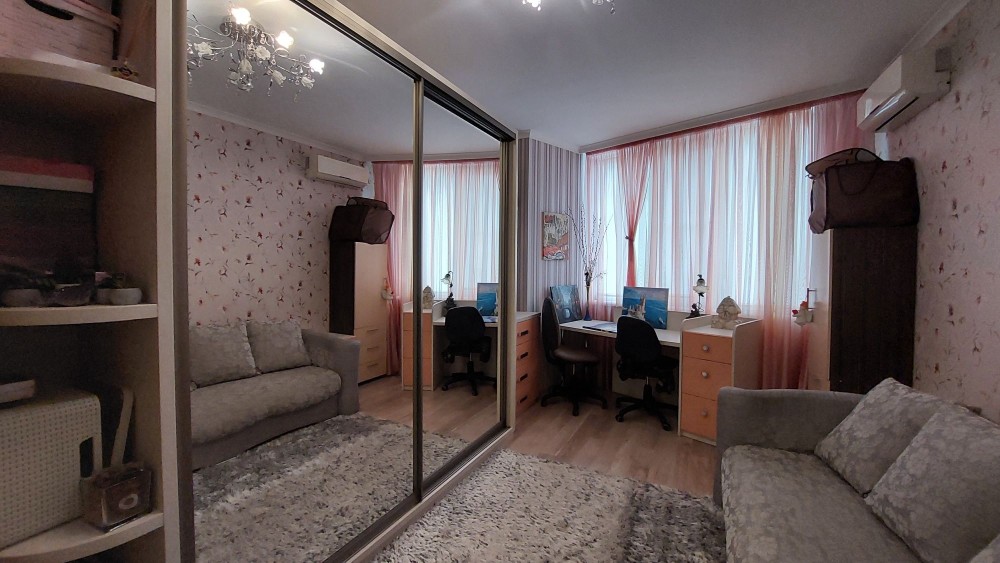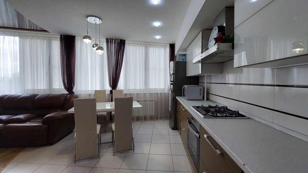 Гарне планування: велика кухня-вітальня,три окремих кімнати, два санвузли, гардеробна, великий коридор. Квартира повністю укомплектована всіма необхідними меблями та технікою. У кожній кімнаті кондиціонер, багато систем зберігання, на кухні є посудомийна машинка.