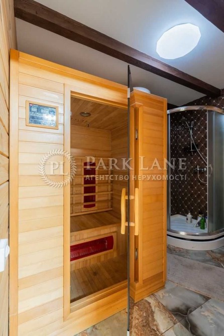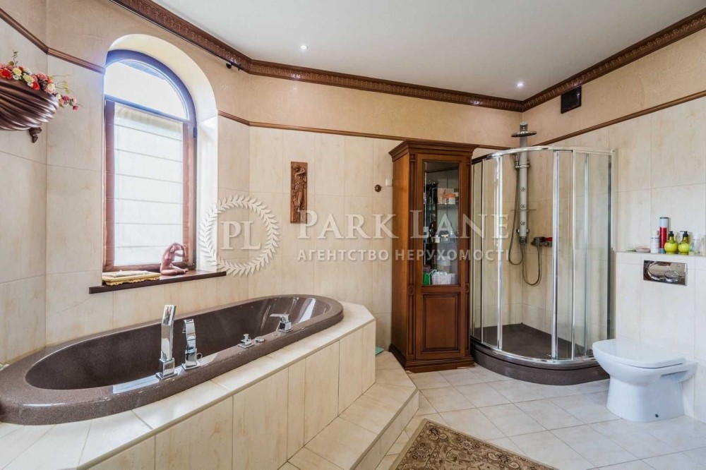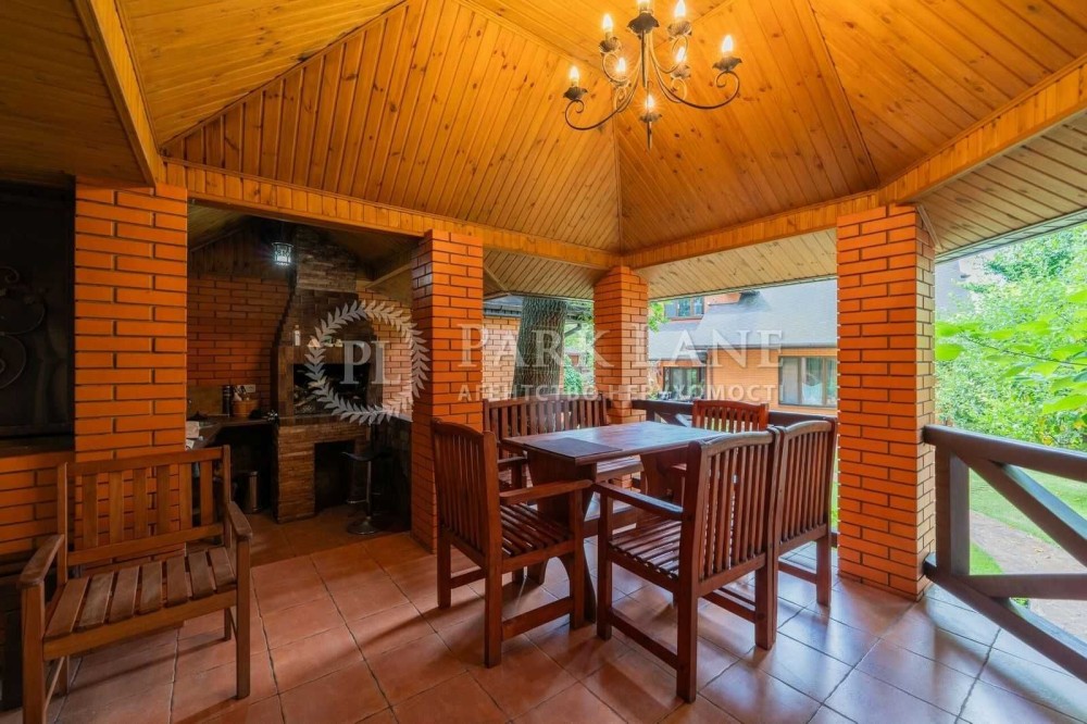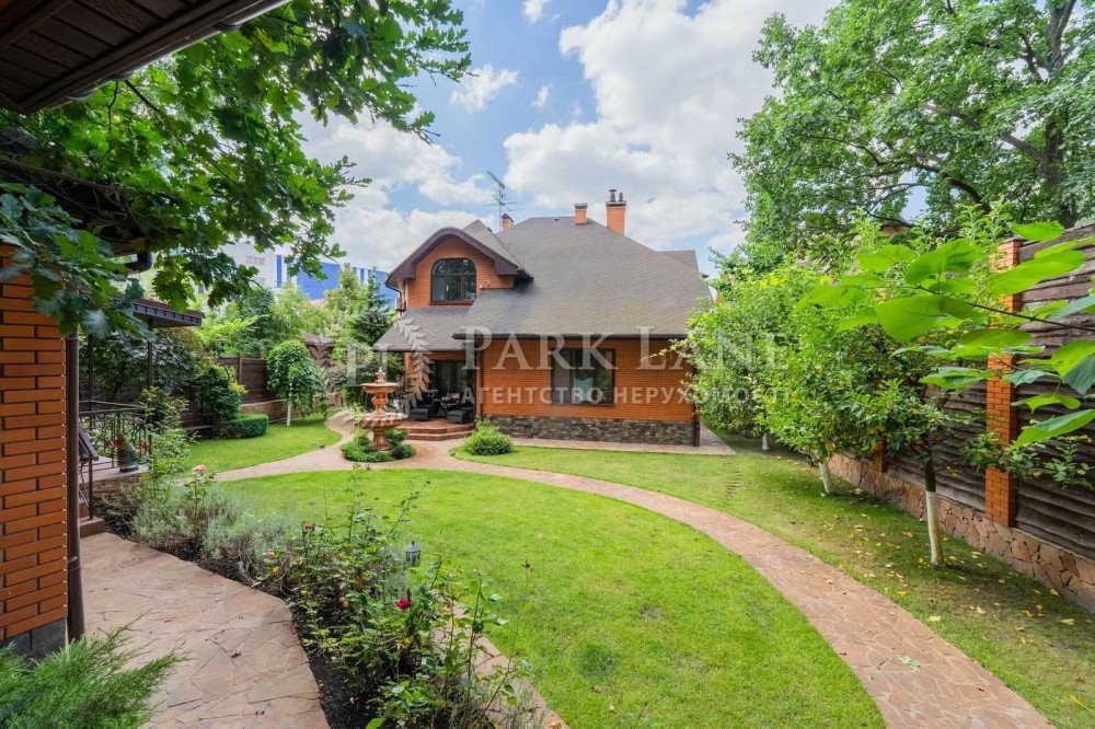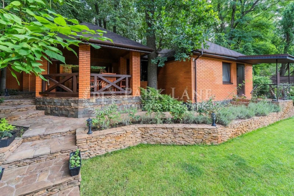 Земля - 10 соток, на якій розташований головний будинок, гостьовий будиночок з сауною та санвузлом, лаунж-зона з барбекю, алея з фонтаном, гараж для авто + накриття для 2 машин біля гаража, ділянка з ландшафтним дизайном та садовими деревами.