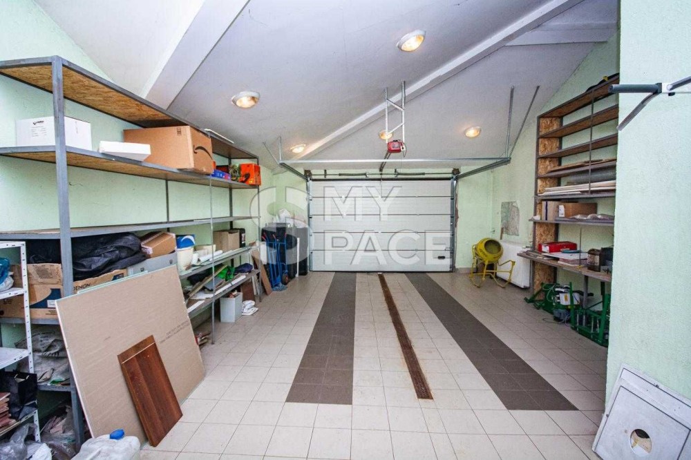 В доме имеется большой гараж в котором ворота открываются автоматически с пульта.