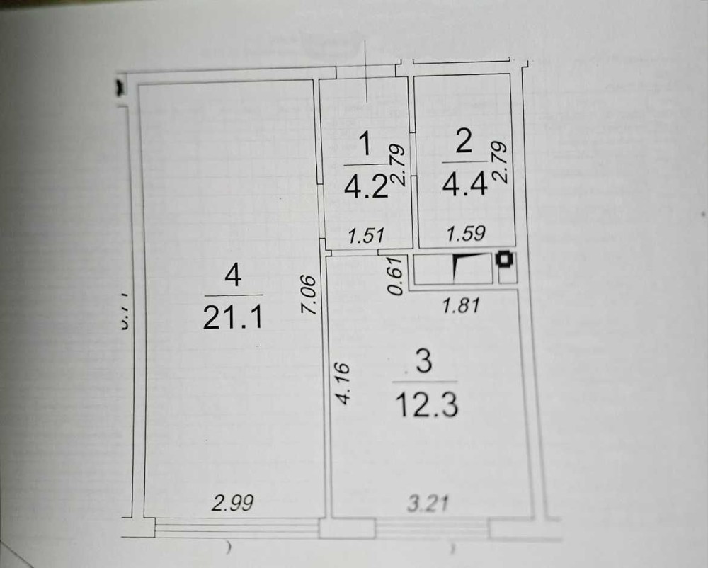 Общая площадь - 43 м.