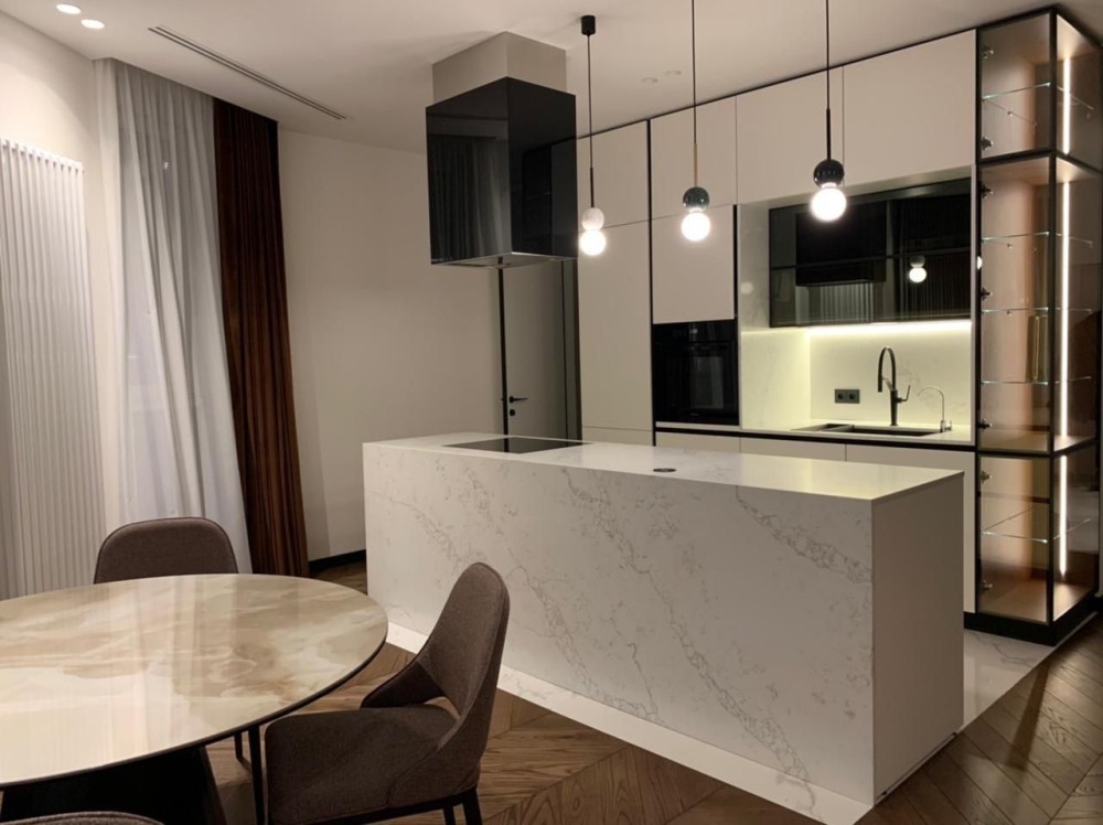 Квартира оснащена системой вентиляции и кондиционирования, системой фильтрации воды, укомплектована встроенной и мягкой итальянской мебелью Gamma, бытовой техникой Miele, качественной сантехникой, техническим и декоративным освещением - Италия, светильники и текстиль Roche Bobois. В ремонте использовались отделочные материалы ведущих европейских производителей, паркетная доска, остров из натурального камня. Просторные светлые комнаты полностью обустроены для комфортной жизни, есть все необходимые предметы интерьера и быта, которые подчеркивают современный стиль и элегантность интерьера.