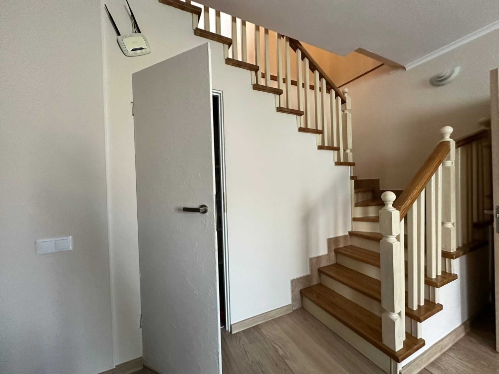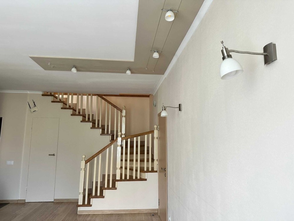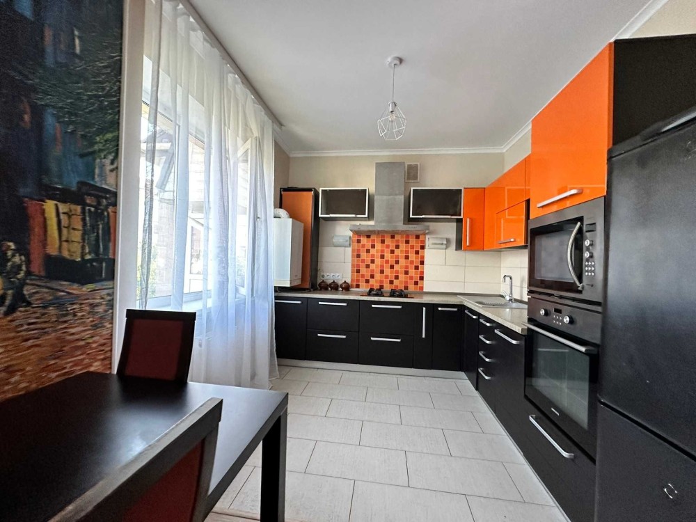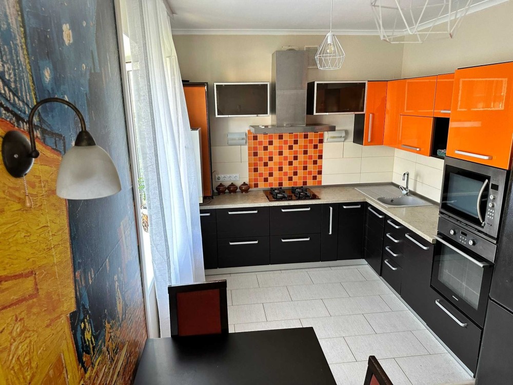 Перший поверх представлено у вигляді великою кухні-студії, санвузла, спальні та комори. Все обладнано необхідною технікою та меблями, що дозволить одразу в квартирі проживати не докладаючи зусиль, оскільки виконано косметичний ремонт.