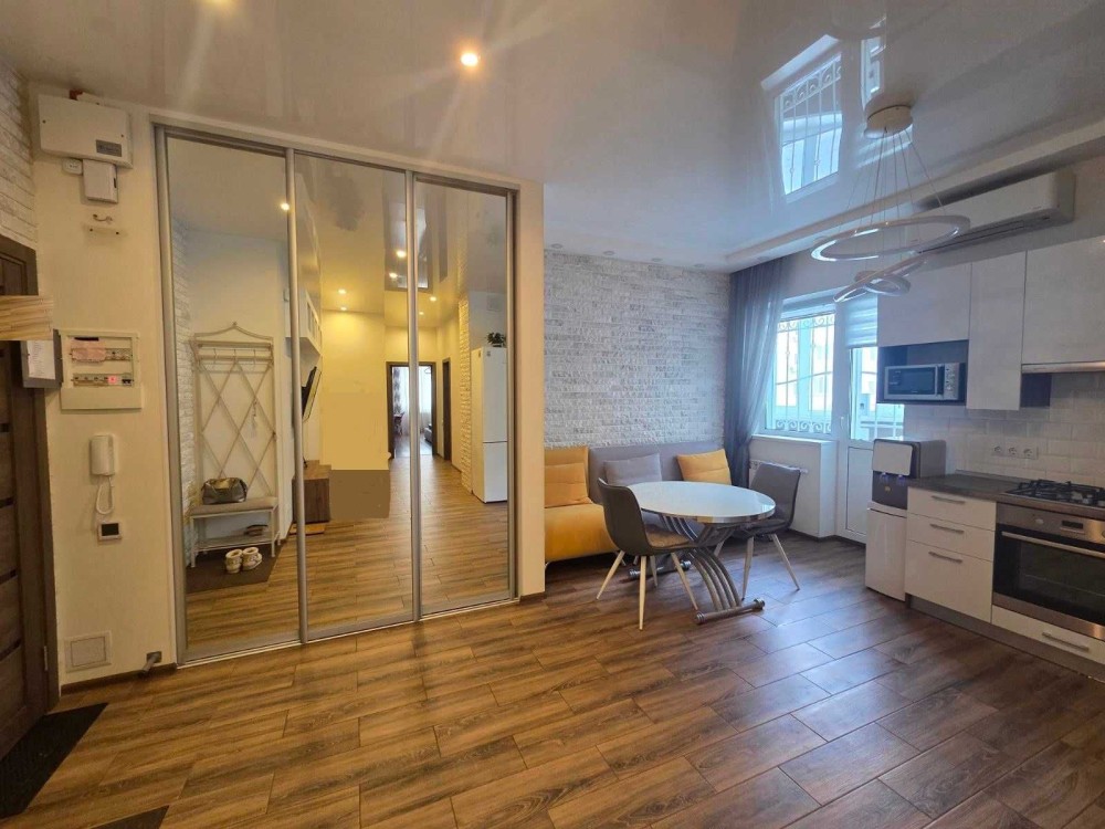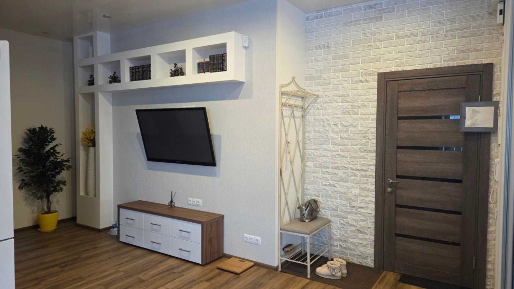 Простора та світла 1-кімнатна квартира з сучасним відкритим плануванням.