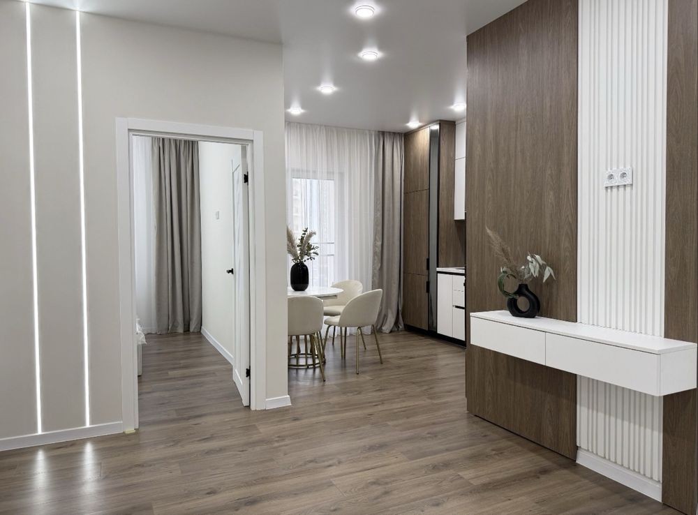 Продаж 2-к квартири вул. Авіаконструктора Антонова 2б. ЖК Sherwood. Планування: кухня-студія з лоджією, 2 спальні, 2 санвузли, гардероб. Панорамні вікна, високі стелі, сучасний євроремонт. Квартира повністю мебльована, з технікою. Комплекс бізнес-класу з генератором, укриттям, закритою територією та охороною. Є дитячі майданчики, зелені зони для відпочинку, підземний. 044 200 10 80