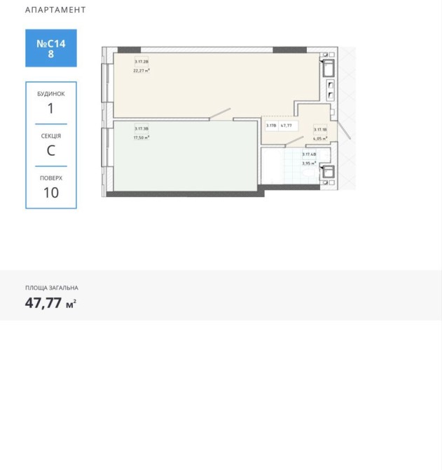 Площа 47.77 метрів