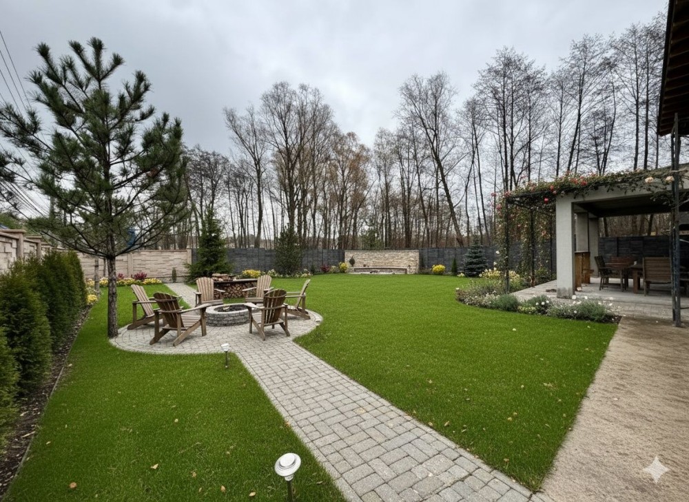 Рулонний газон, зовнішнє освітлення, ландшафт