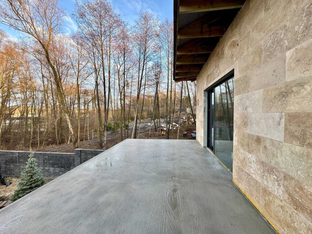 Фасад: травертин + термодерево
