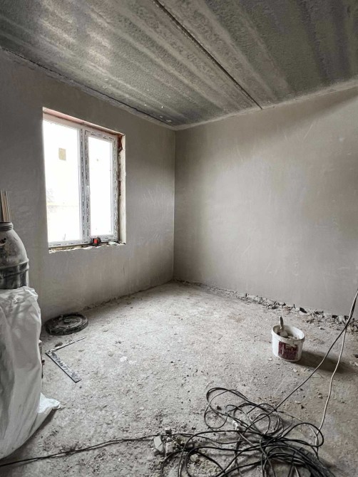 у вільних таунхаусах вже виконується чистова штукатурка стін
