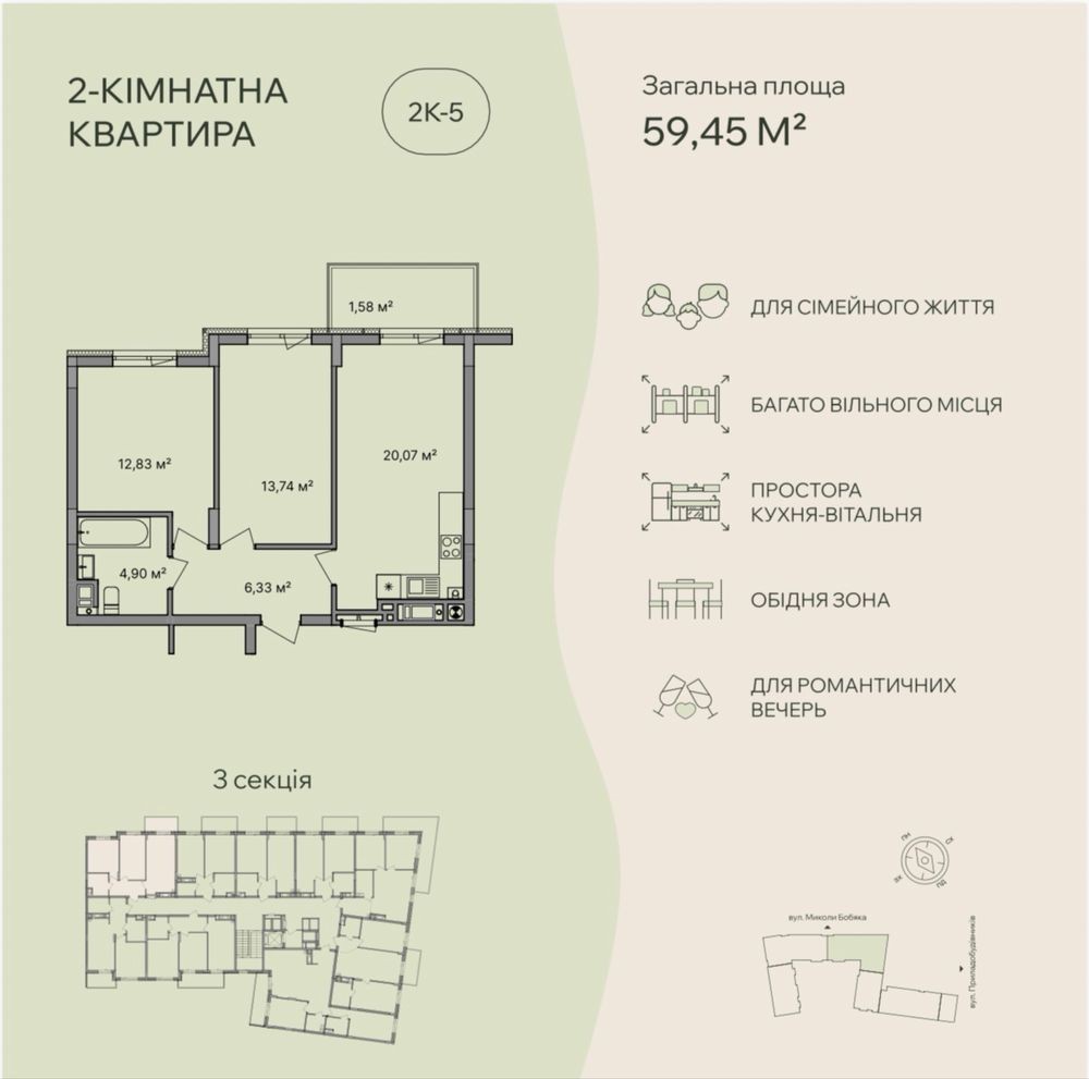 • Общая площадь 59.45 м2