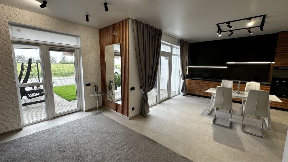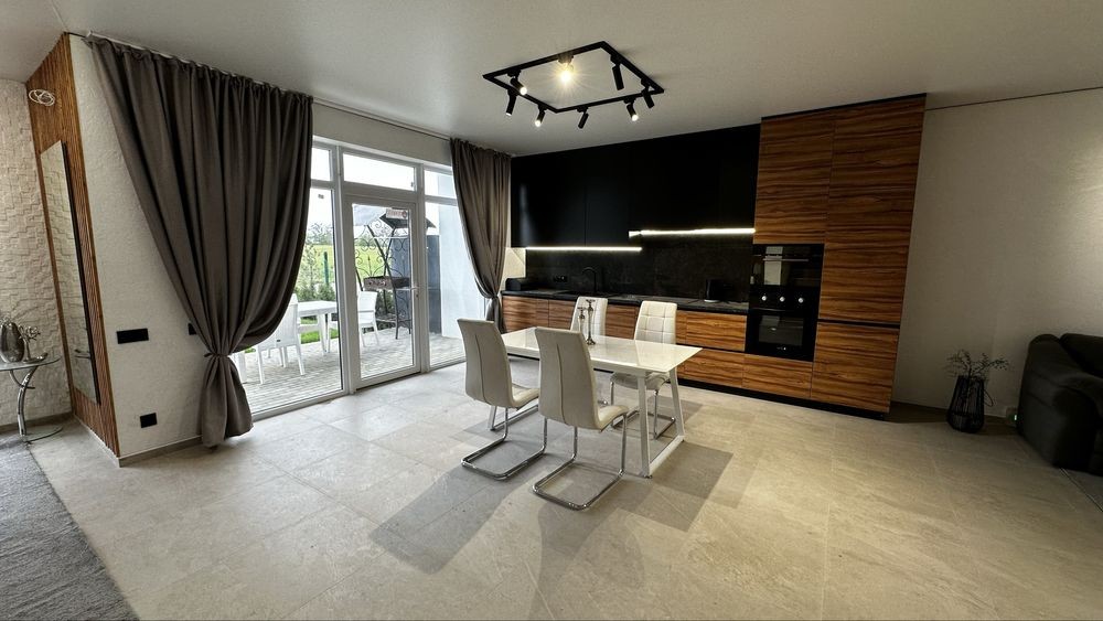 КУХНЯ-ВІТАЛЬНЯ з виходом на ТЕРАССУ в двір, з можливістю парковки 2х авто та окремі 3 спальні кімнати