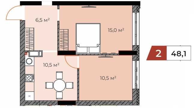 • Общая площадь 48.1 м2
