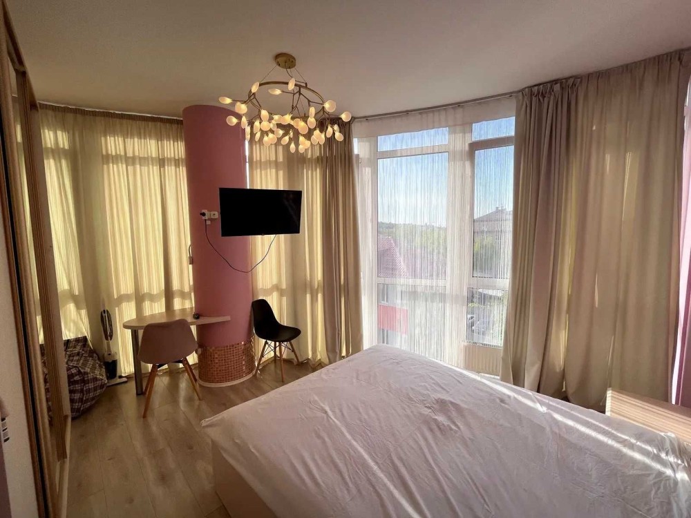 В другій кімнаті: двуспальные ліжко з ортопедичним матрасом, шафа купе, кондиціонер, телевізор.