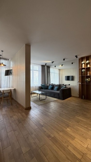 Квартира расположена на 22 этаже, общая площадь 60 м². Удобная планировка: отдельная спальня, гостиная, кухня, просторный санузел. Квартира северо-восточная, благодаря чему в ней комфортно в любое время года. Из окон открывается красивый вид на море и Аркадию.