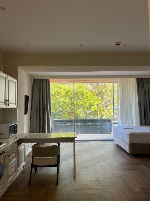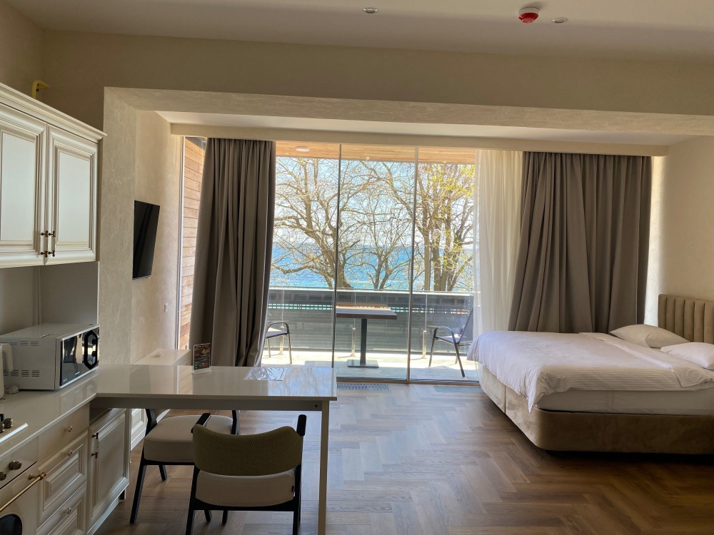 • АПАРТАМЕНТЫ с охраняемой территорией, что обеспечивает безопасность и приватность. Студия с панорамными окнами и видом на море