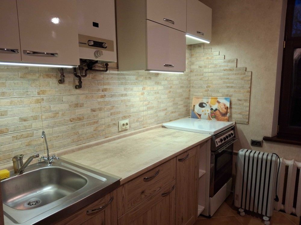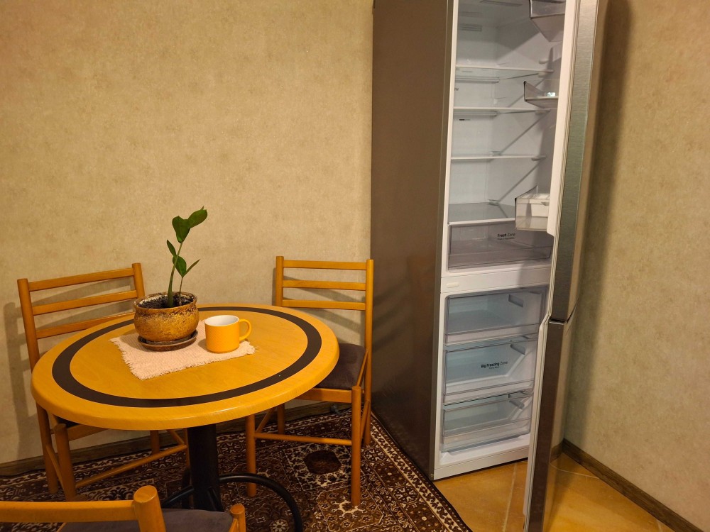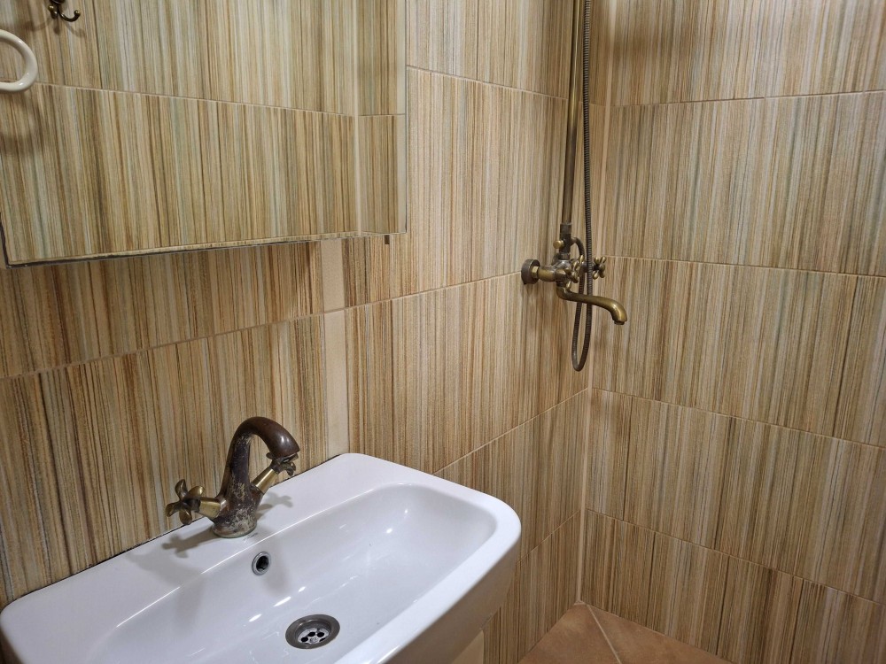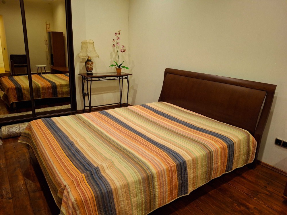 40 м . Красивая светлая квартира с хорошим ремонтом. деревянный пол в комнате. утеплены стены. 3 окна. очень светлая. итальянская плитка на полу и в с\узле ( с душем) новый холодильник. газ.колонка и плита. всегда есть отопление и горячая вода. Парковка для машины. небольшие коммунальные расходы.