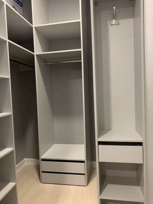 Общая площадь 50 м.кв. Формат: кухня, спальня, санузел, большая гардеробная, прихожая, лоджия.