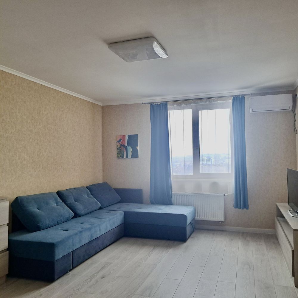 Оренда сучасної квартири-студії в ЖК Акварелі-2. В кімнаті: розкладний диван, телевізор, кондиціонер, письмовий стіл, шафа, комод. Кухня обладнана необхідною технікою. Просторий балкон-лоджія. Санвузол з ванною, встановлений бойлер. Чудова інфраструктура: в пішій доступності декілька супермаркетів (Новус, АТБ), безліч продуктових крамниць та кавярень. Вартість оренди 12000 грн. Умови оренди:оплата за два місці+послуги рієлтора (50%). комісія: 50%
