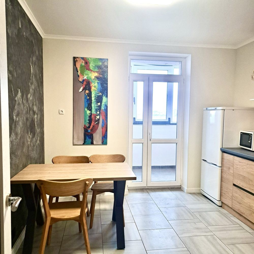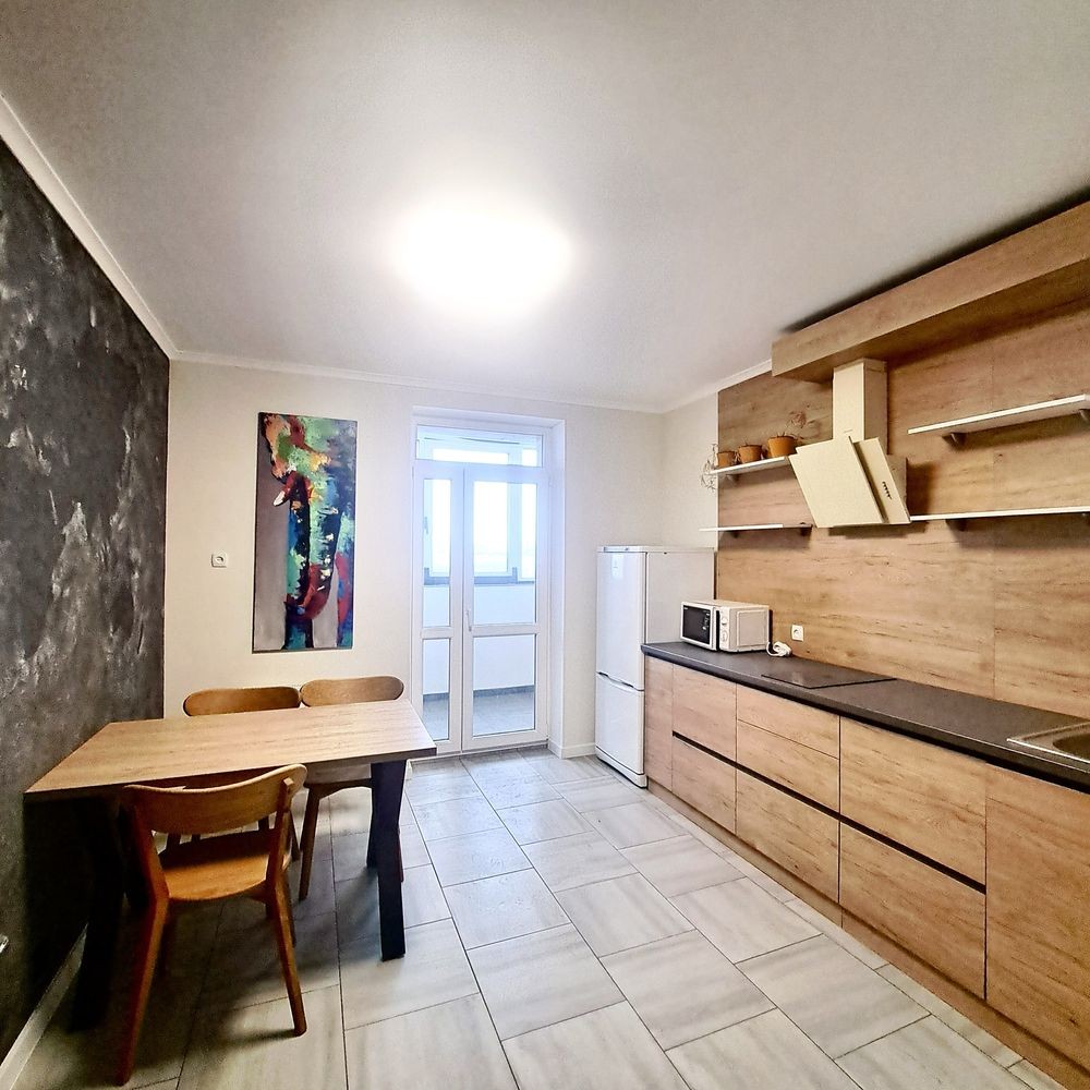 Уютная кухня полностью укомплектована мебелью и бытовой техникой.