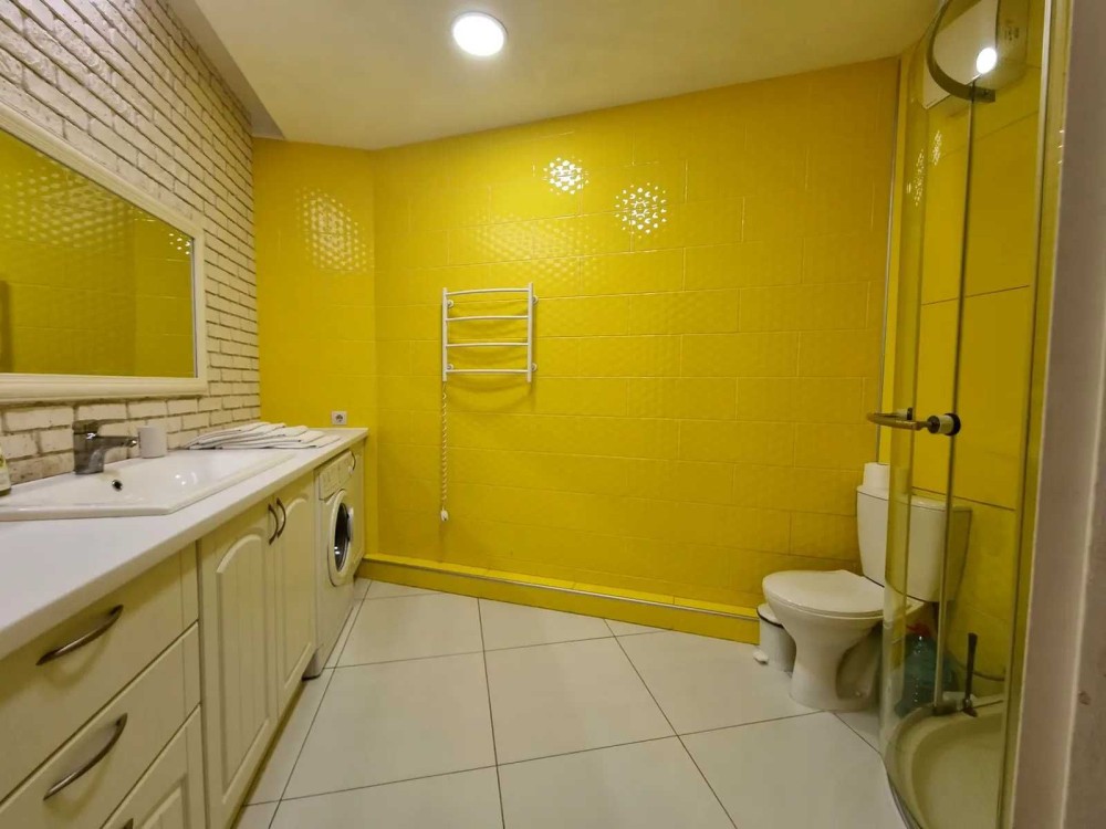 Квартира повністю укомплектована для комфортного проживання. Кімната з двоспальним ліжком, для досугу є великий кутовий диван, телевізор, тумбочки . Кухня з встроєною кухонною стінкою, мікрохвильовою пічкою. є чайник. Велика суміжна комфортна ванна кімната з душовою, пральною машинкою, бойлером та вбудованими шафами.