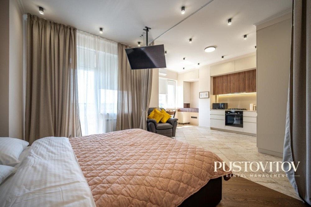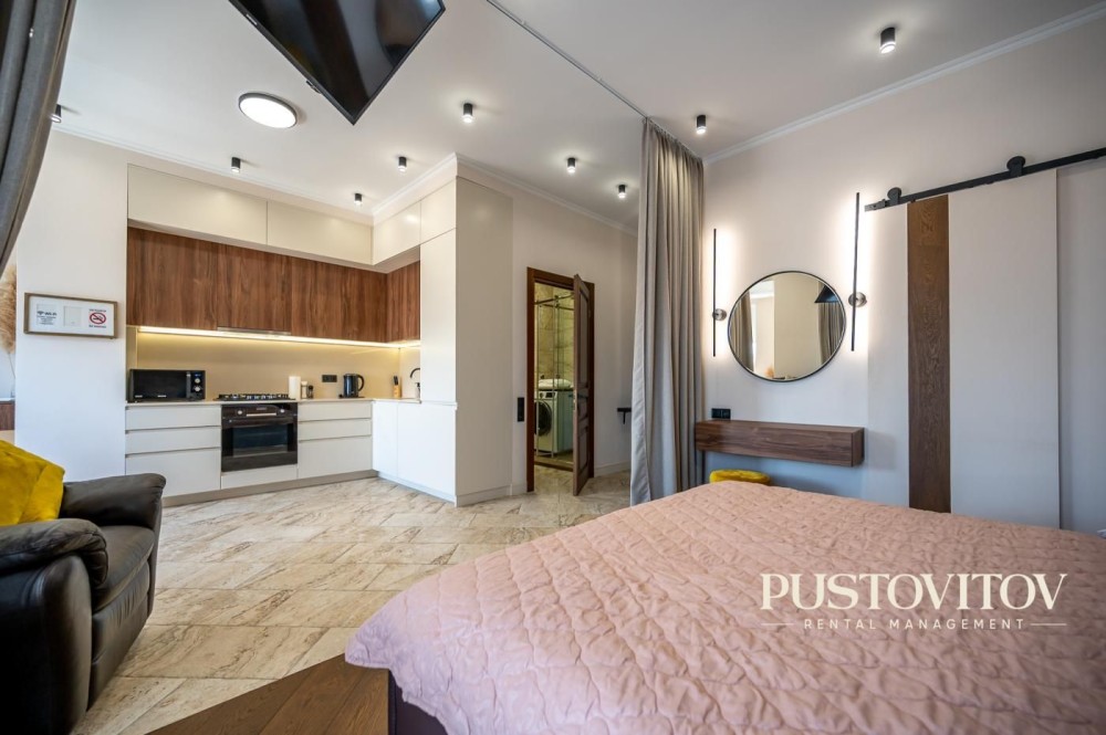 -Планировка: квартира-студия, гардеробная, балкон, с/у с душем.