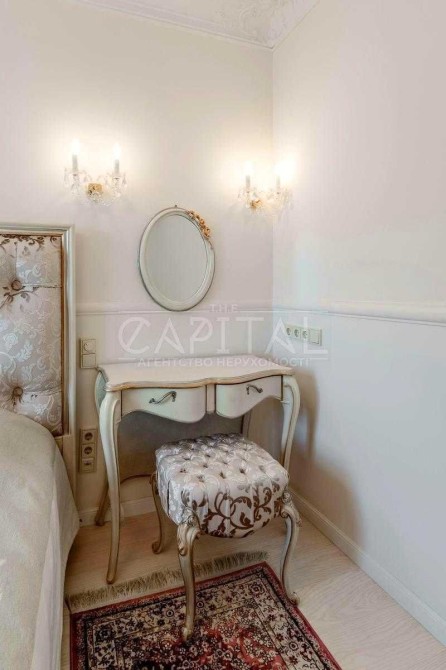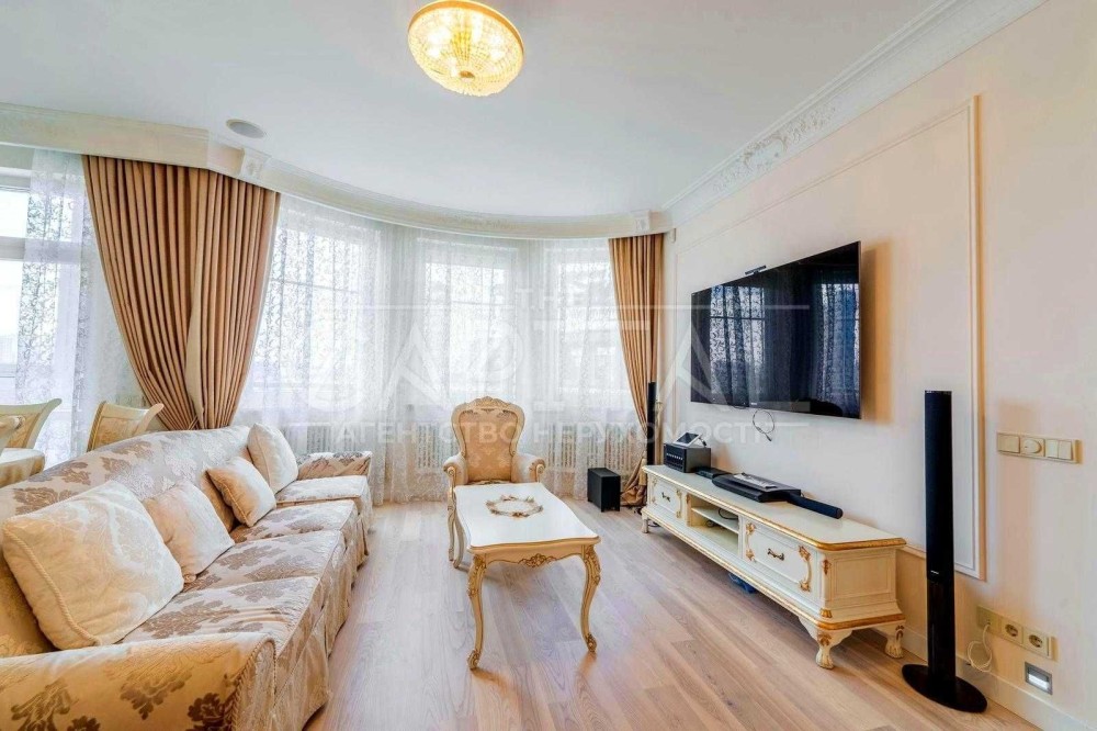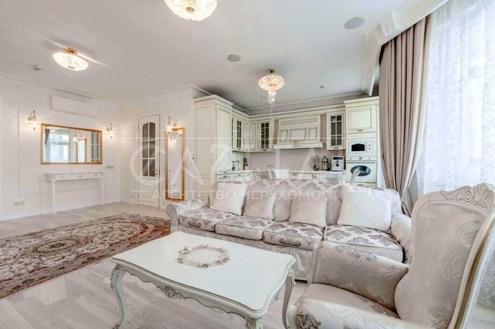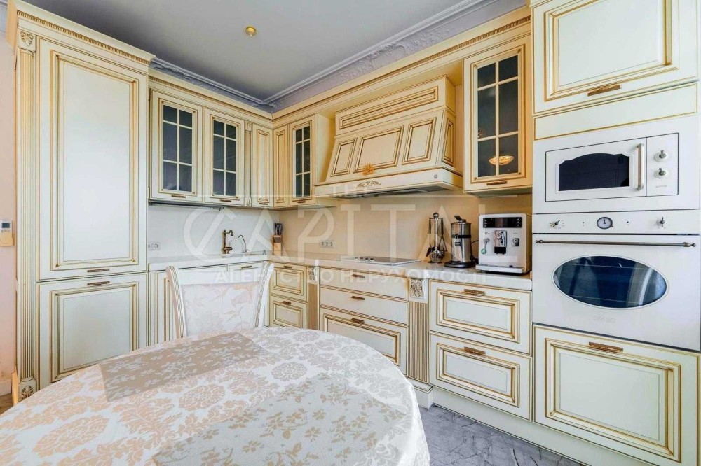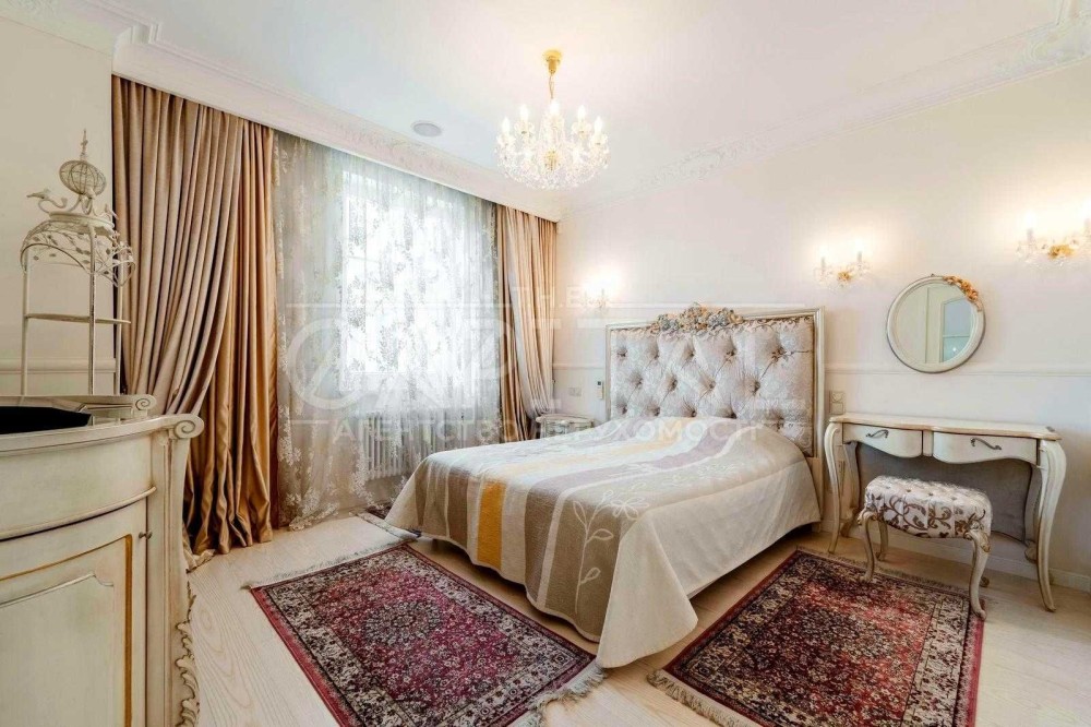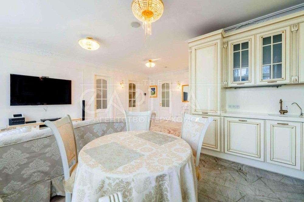Виконаний дорогий дизайнерський ремонт у класичному стилі з використанням якісних матеріалів із каменю та натурального дерева.