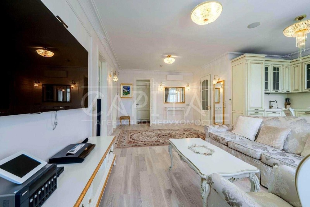 У кожній кімнаті кондиціонер, три телевізори, у вітальні, спальні та ванній кімнаті, стереосистема, посудомийна машина, на кухні стільниця з цілісного каменю.