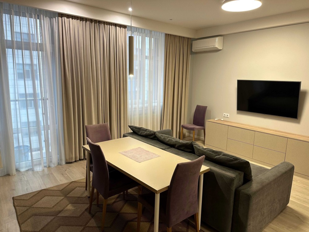Аренда 2-комнатной квартиры со стильным дизайнерским ремонтом в современном жилом комплексе IQ House. Квартира, оснащённая системой «умный дом», полностью укомплектована дизайнерской мебелью, современной техникой и дорогой сантехникой. Вся встроенная техника Electrolux, в каждой комнате Кондиционеры Toshiba, телевизоры Samsung, бронированная дверь с видеодомофоном. В квартире обустроено большое количество мест для хранения, большой шкаф-гардеробная в спальне.