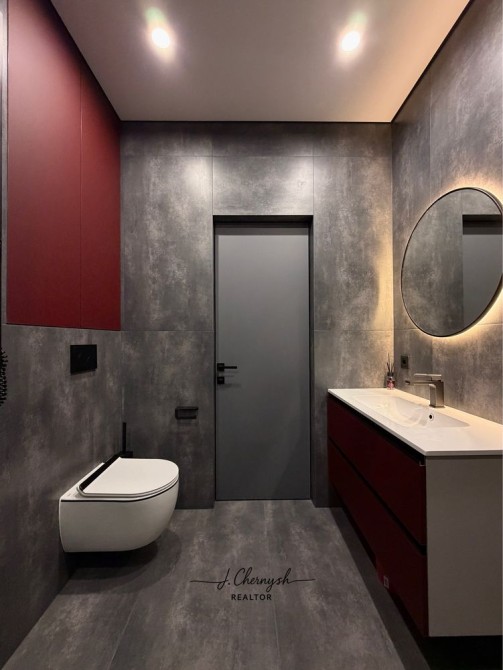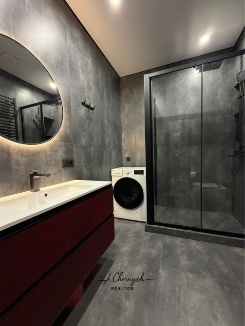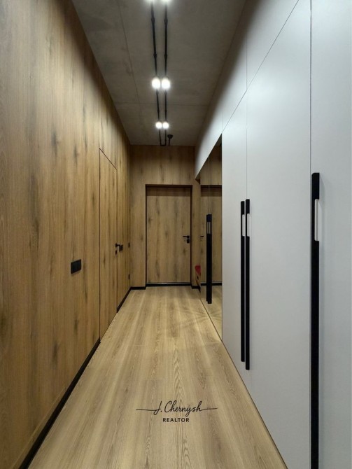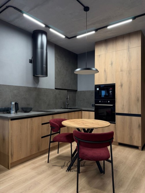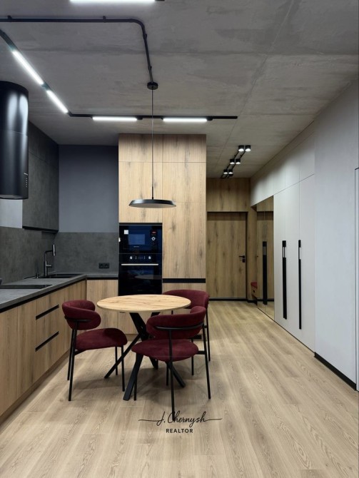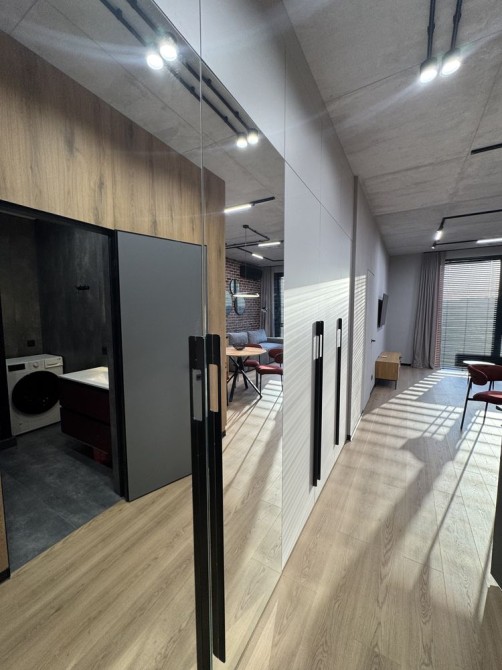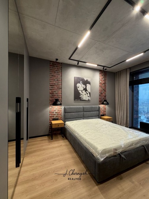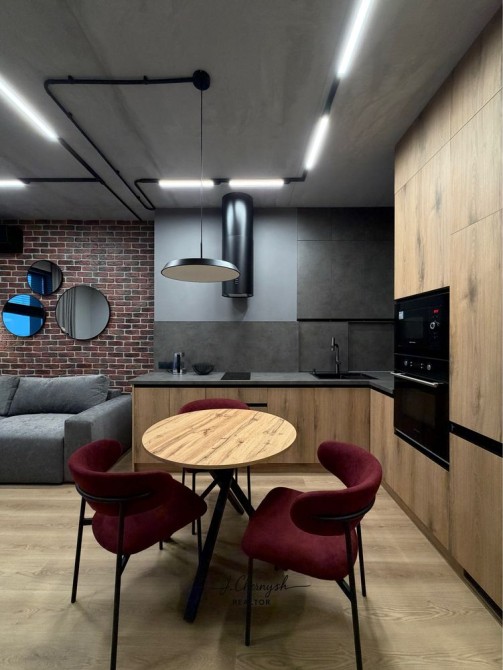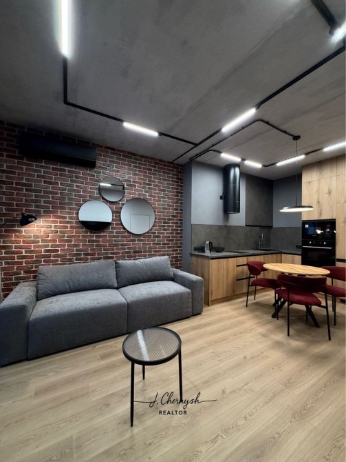 Квартира выполнена в стильном loft-дизайне с дорогими материалами и продуманным освещением.
