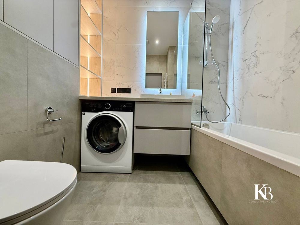 Полностью укомплектована мебелью и техникой. В санузле — ванна и тёплый пол. В квартире установлен инвертор, на лифты генератор.