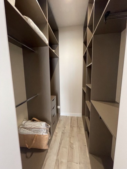 В спальне двухспальная кровать, телевизор, гардеробная.
