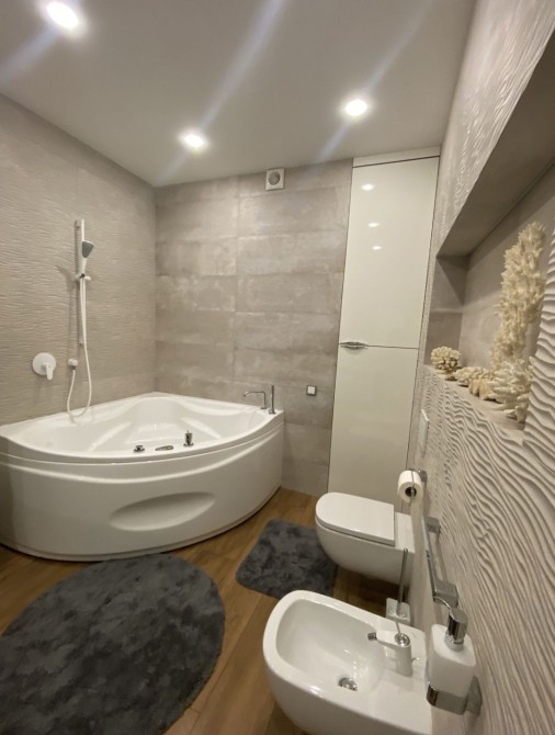В квартире выполнен стильный качественный ремонт для себя с использованием дорогих материалов. Вся мебель немецкая техника немецких и итальянских производителей. В квартире сигнализация, теплый пол, кондиционеры.