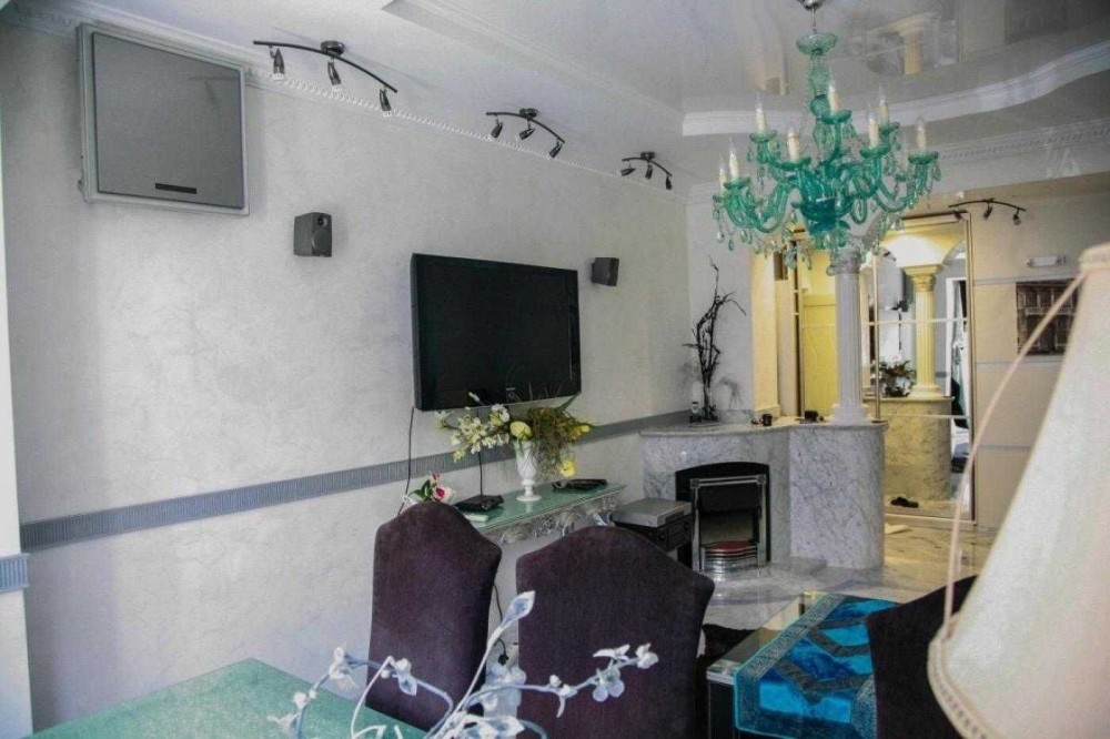 Дом «сталинка», с отличным ремонтом и мебелью, подъезд на электронном замке, чистый, стоянка на 2 автомобиля во дворе, бронедверь, охранная сигнализация, мебель, балкон застеклен, стеклопакеты, венецианская штукатурка, полы - мрамор, ванная - мрамор+мозаика, кондиционер, электрокамин, телевизор, холодильник, газовая поверхность, электро духовка, стиральная, посудомоечная машины, бойлер, комнаты раздельные, кухонный, спальный, гостиный гарнитуры, шкафы-купе, кладовая, тёплые полы, паркет, во двое находится элитный спорт-клуб, с улицы - продуктовый магазин, 2 салона, кафе-бар.