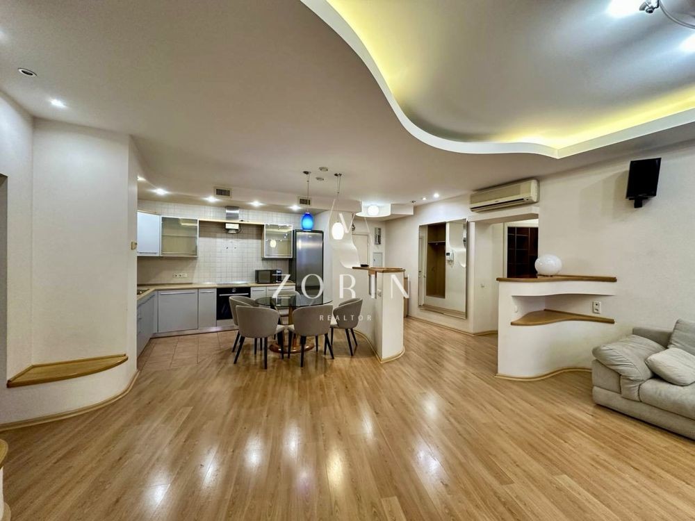 Кухня-гостиная, две отдельные спальные и просторная гардеробная.