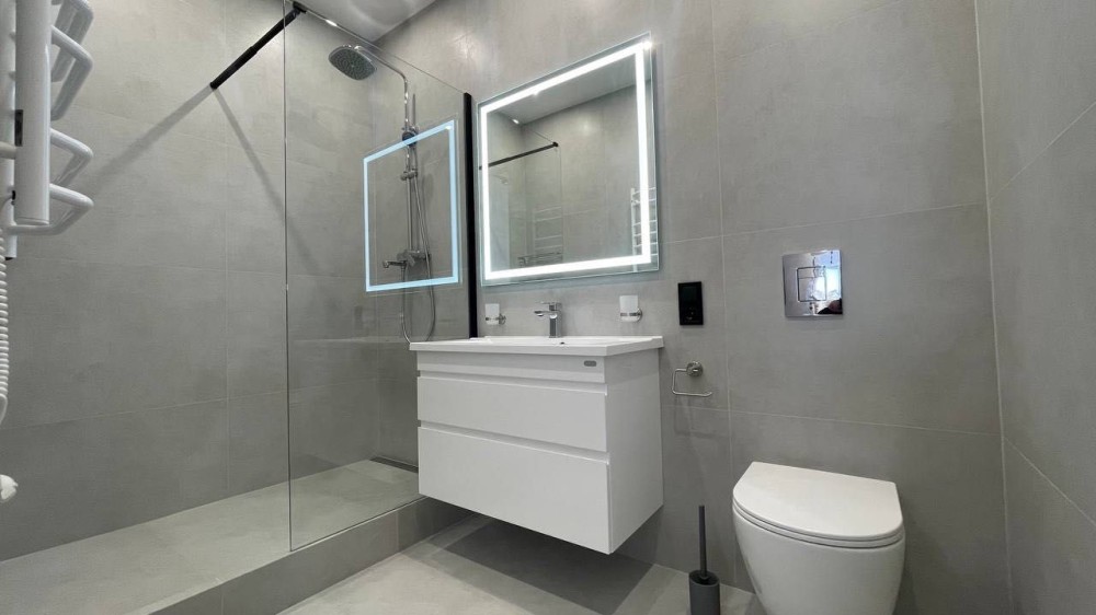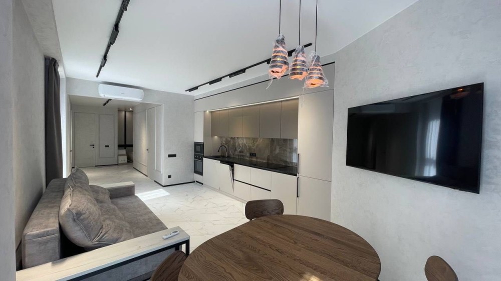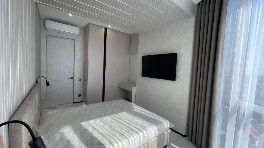 Спланирована: кухня гостиная + две отдельные спальни, гардеробная, постирочная, просторный с/у с душевой кабиной.