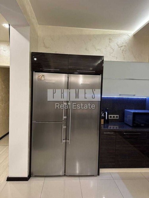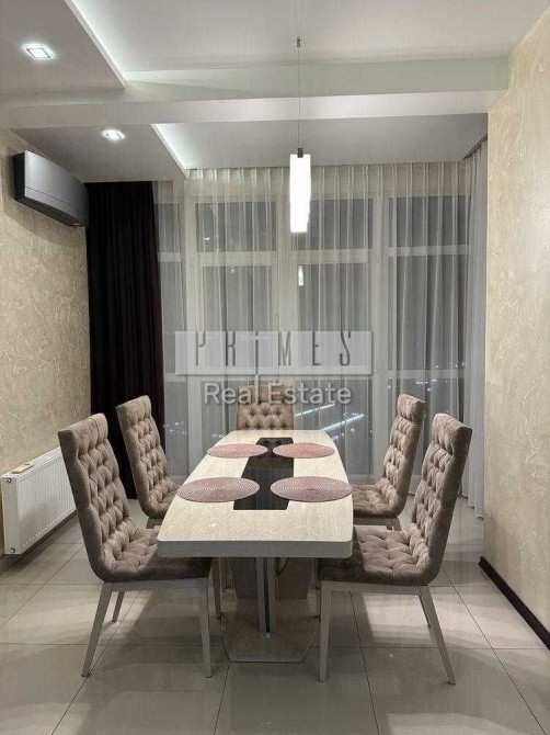 Квартира виконана у світлих тонах, що разом із великою площею скління створює відчуття безмежного простору. Високі стелі та грамотне освітлення підкреслюють сучасний інтер'єр. Комфорт у будь-яку пору року забезпечує система теплої підлоги, розведена по всій житловій зоні.Кухня-вітальня (Open Space): Серце квартири. Це величезна зона для відпочинку та прийому гостей. У центрі уваги — велика плазмова панель останнього покоління, що створює ефект домашнього кінотеатру.