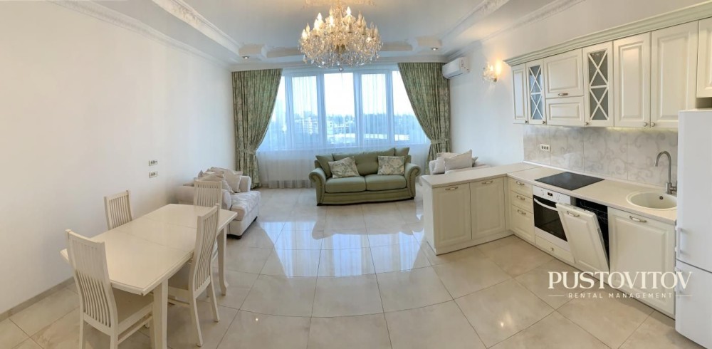 - Планировка: кухня-студия, две спальни, с/у с ванной, гардеробная.