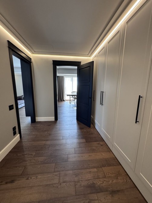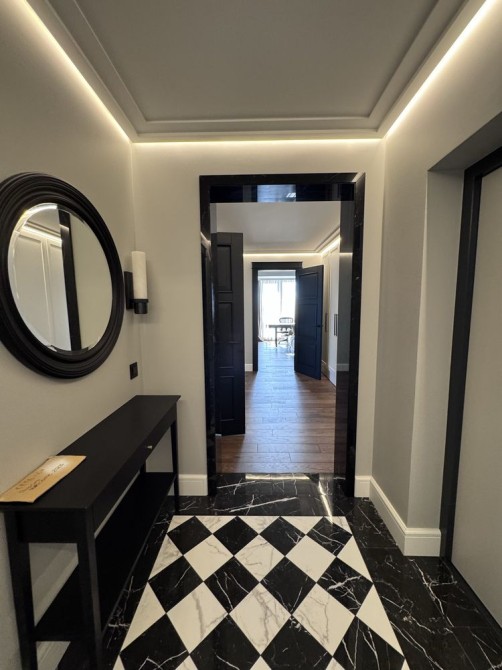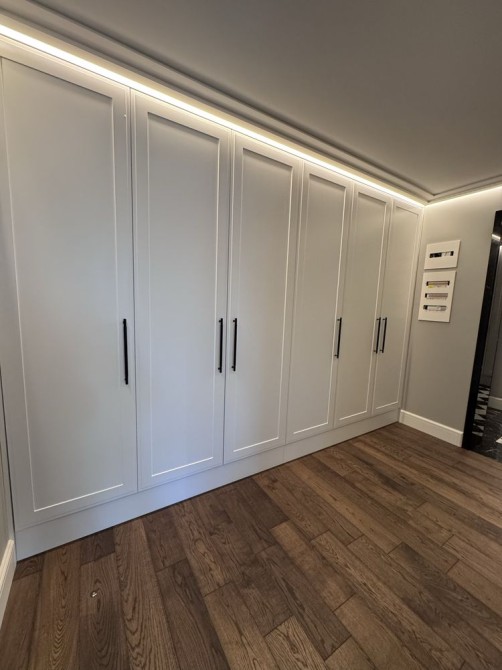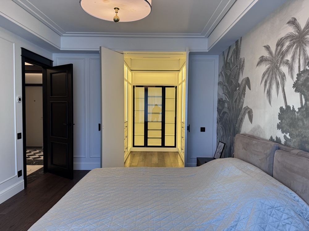 • Большое количество мест для хранения, гардеробная в спальне, шкафы вдоль коридора, LED-подсветка.